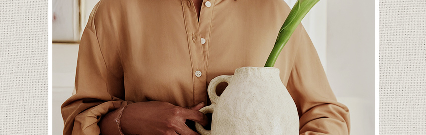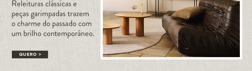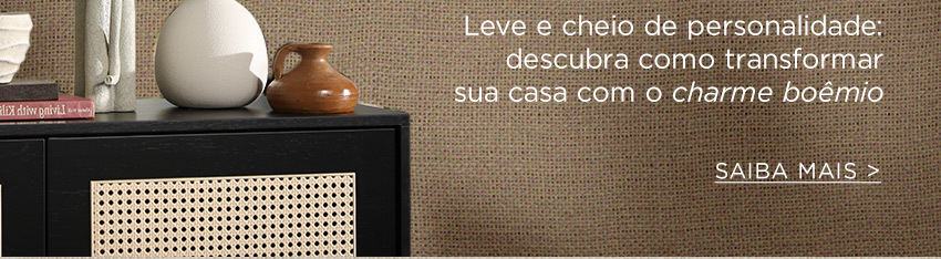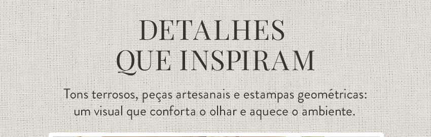Mood vintage no mobiliário, tapetes de fibras naturais, tons terrosos na decoração e aquele clima cozy…